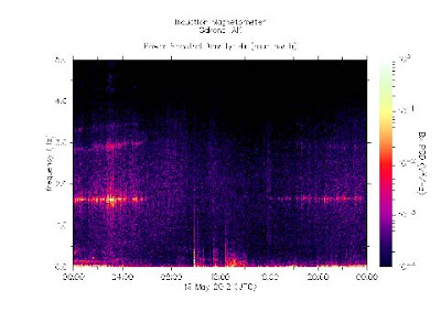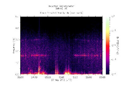 Poco dopo le 12 (UTC) si nota un picco di intensità in correlazione con 2 forti sismi (2012/05/20 13:21:06 44.882 11.383 2.4 Ml:4.1 Pianura_padana_emiliana; 2012/05/20 13:18:02 44.831 11.49 4.7 Ml:5.1 Pianura_padana_emiliana). Per poi ripetersi ai seguenti orari: 2012/05/20 17:40:17 44.95 11.25 10 Ml:3.5 Pianura_padana_lombarda 2012/05/20 17:37:14 44.88 11.38 3.2 Ml:4.5 Pianura_padana_emiliana.